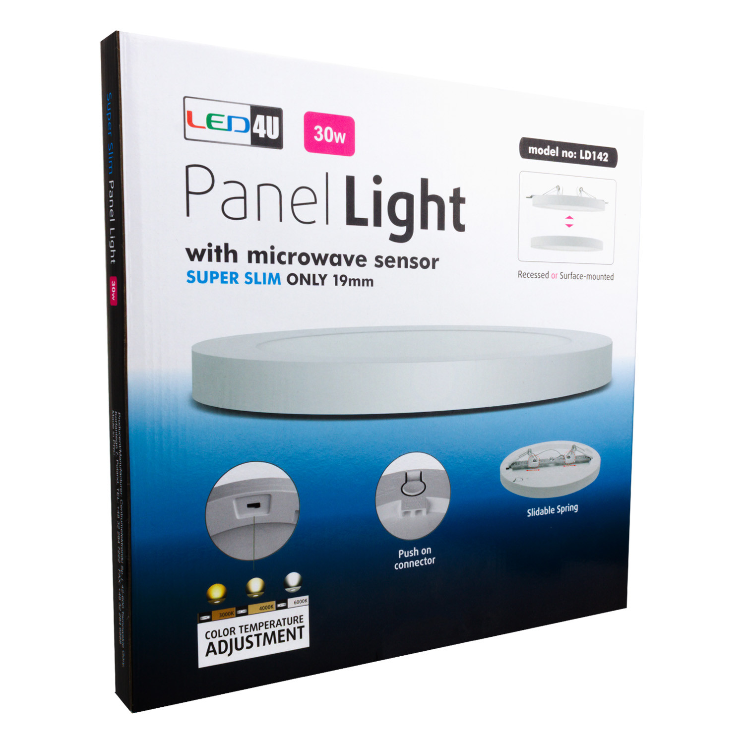 Panel plafon LED 7in1 podtynkowy natynkowy ultra slim 30W 3 kolory (WW, NW, CW) Led4U LD142 mikrofala wbudowany zasilacz