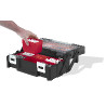 Praktyczna i pojemna skrzynka narzędziowa wyposażona jest w różnej wielkości wymienne pojemniki: 6 głębokich i 12 standardowych.