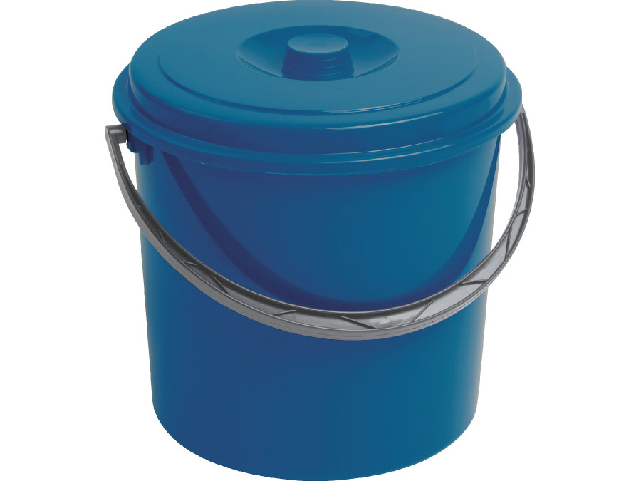 Poręczne plastikowe wiadro z praktyczną pokrywką.