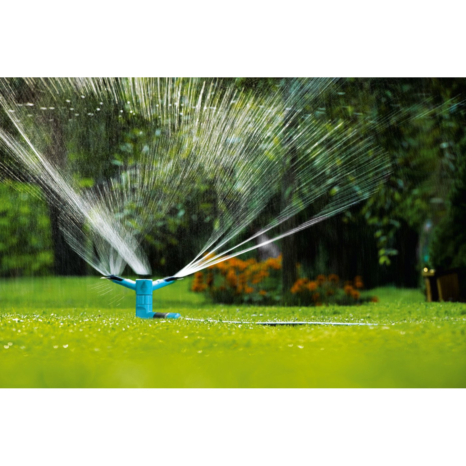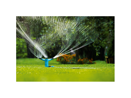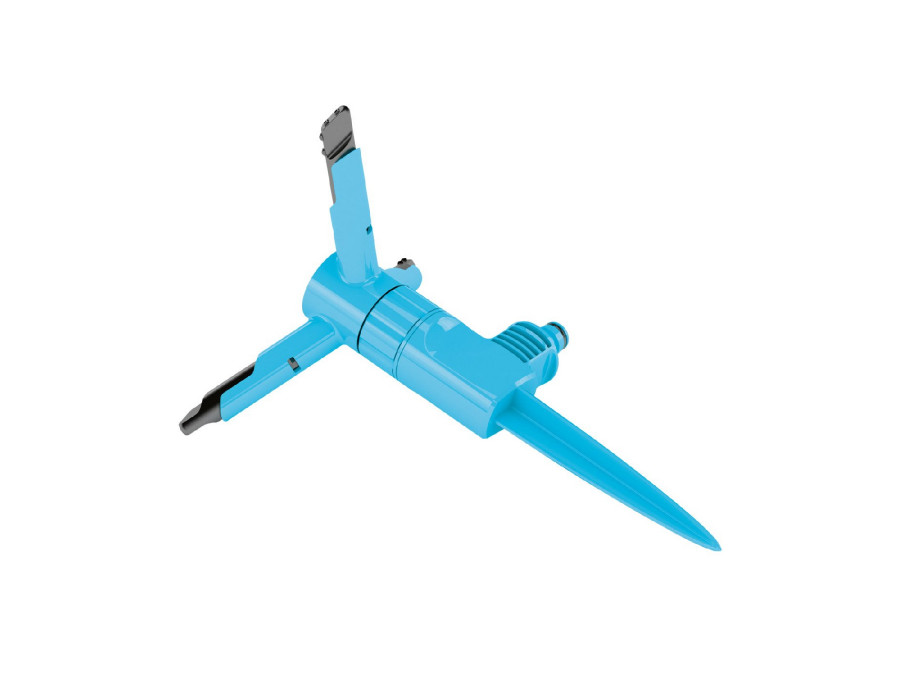 Montuje się go w ziemi za pomocą podstawy-szpilki. Równomierne nawadnianie trawnika zapewnia 12 otworów wylotowych.