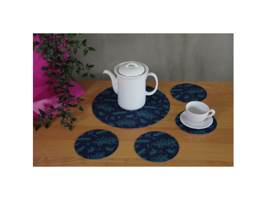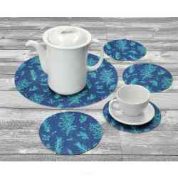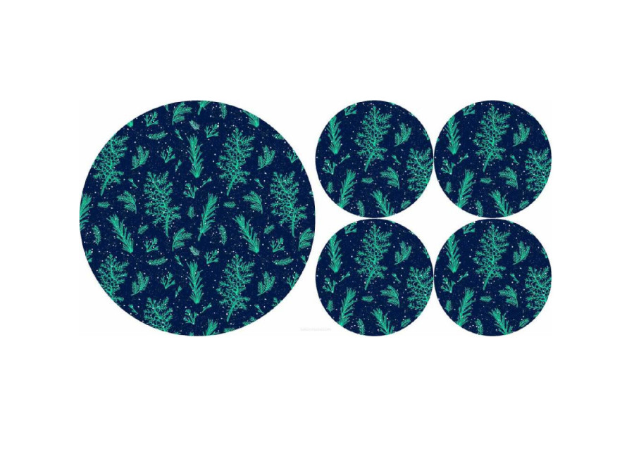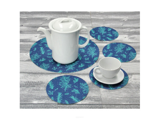 Zestaw zawiera- Zestaw podkładek na stół okrągłych 1+4 - JUNIPER