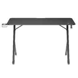 Blat o wymiarach 120x60 cm zapewnia odpowiednią przestrzeń na monitor, klawiaturę, mysz i akcesoria, a wysokość 75 cm gwarantuje wygodną pozycję podczas wielogodzinnych sesji. Stalowa konstrukcja w połączeniu z blatem z powłoką typu carbon sprawia, że biurko jest trwałe, odporne na uszkodzenia mechaniczne i prezentuje się nowocześnie. Maksymalne obciążenie wynosi aż 75 kg, co zapewnia stabilność nawet przy rozbudowanym stanowisku gamingowym.