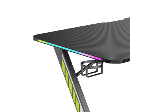 Sterownik oświetlenia został wbudowany w blat, dzięki czemu obsługa jest szybka i intuicyjna. Dynamiczne podświetlenie tworzy wyjątkowy klimat podczas rozgrywek, podnosząc wrażenia wizualne na zupełnie nowy poziom. Dodatkowo dzięki dołączonej przejściówce z 3-pinowym interfejsem ARGB 5V, istnieje możliwość podłączenia do zewnętrznych urządzeń sterujących oświetleniem.