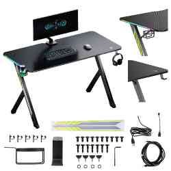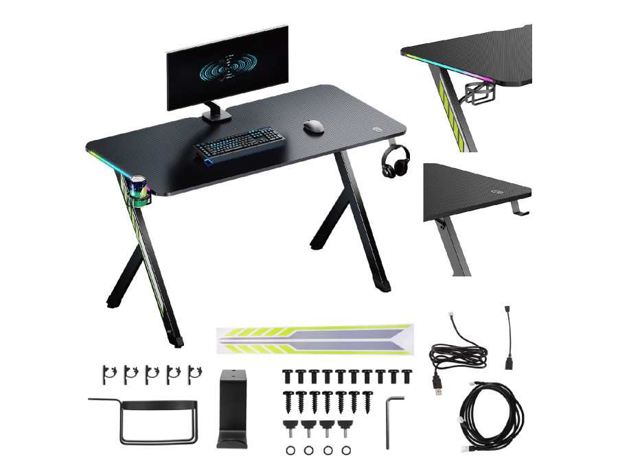 Połączenie stalowej ramy, carbonowej powłoki blatu oraz efektownego podświetlenia LED sprawia, że biurko nie tylko jest praktyczne, ale i prezentuje się wyjątkowo stylowo. Dzięki nowoczesnym rozwiązaniom i mocnej konstrukcji to mebel, który idealnie sprawdzi się zarówno w pokoju gracza, jak i w nowoczesnym biurze.