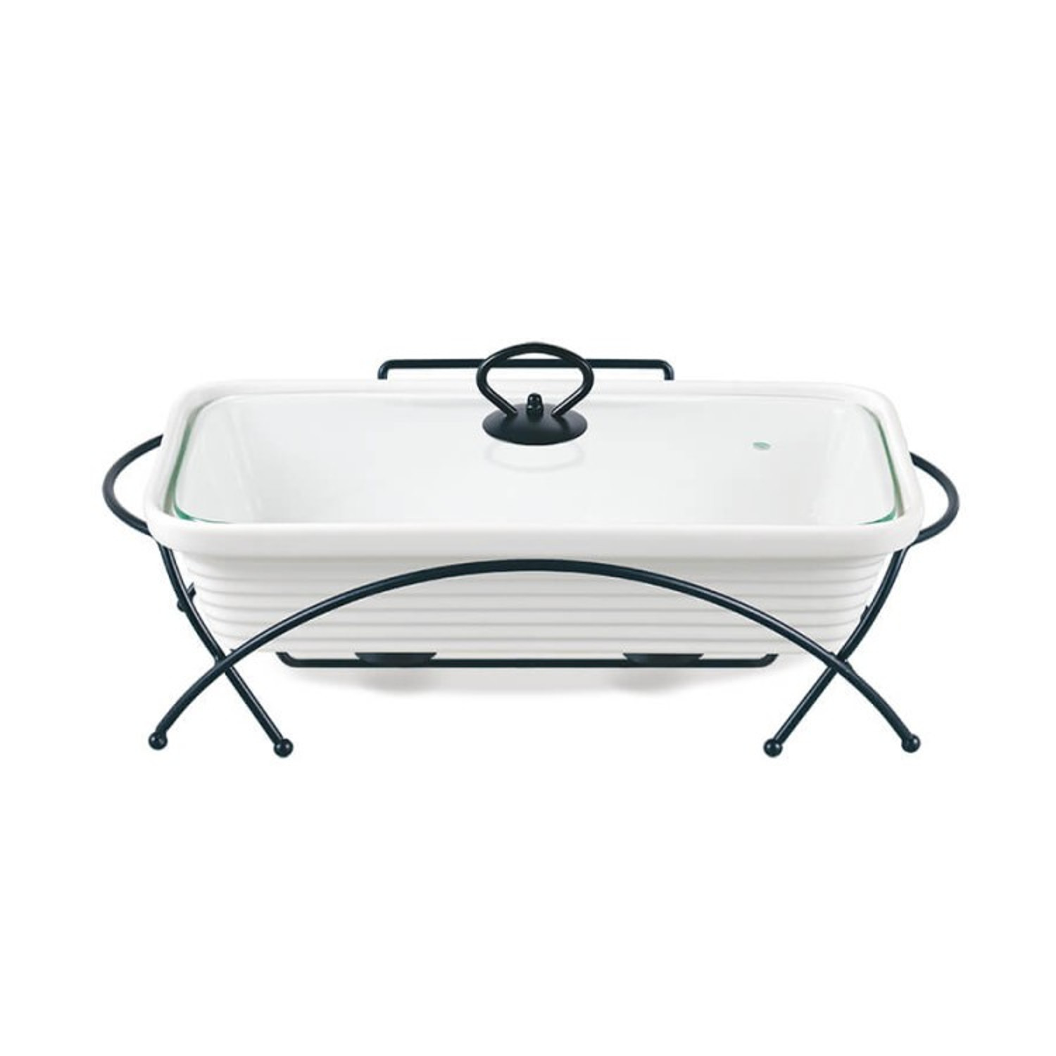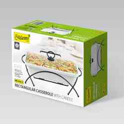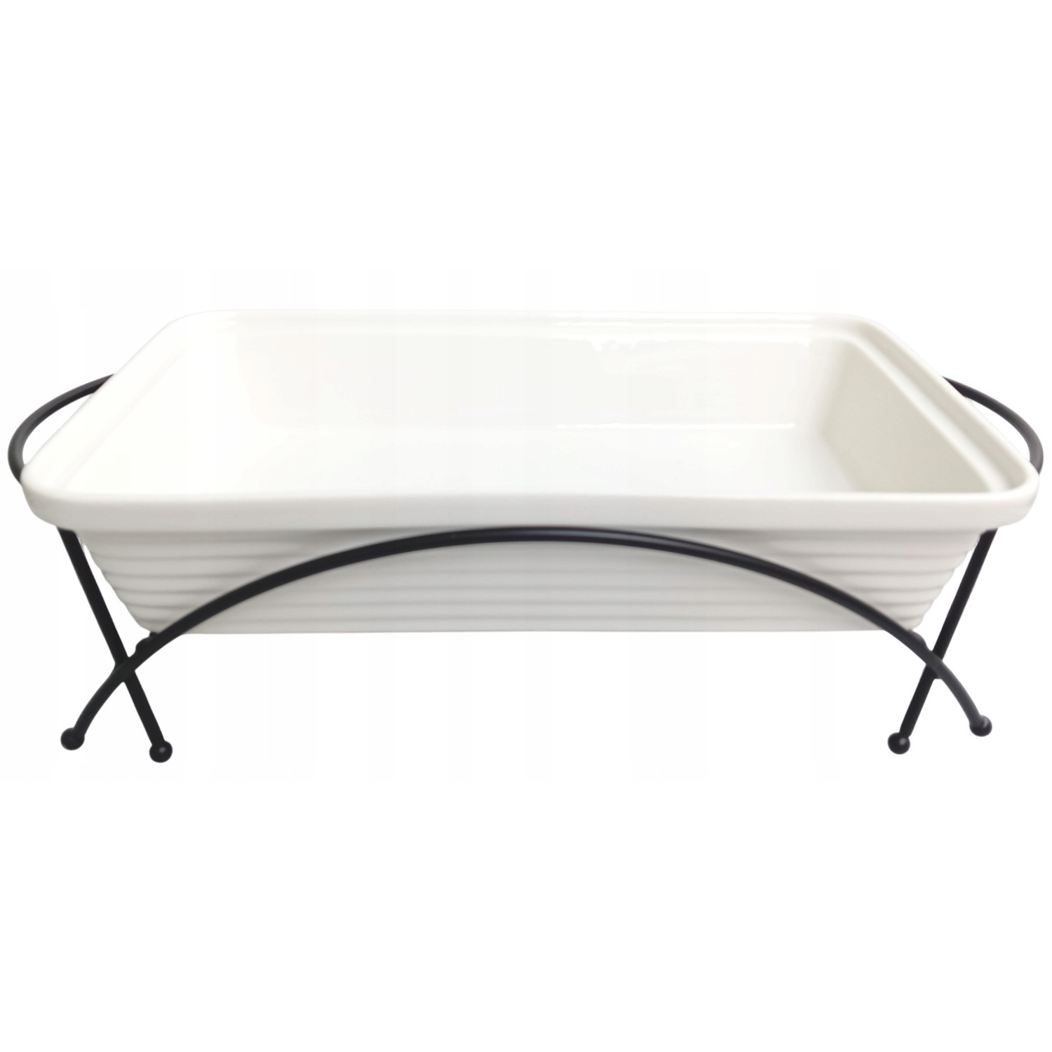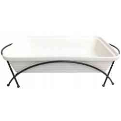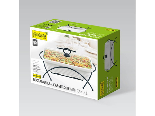 Ceramiczny podgrzewacz do potraw Maestro, Prostokątny, Kolor biały, pojemność 1,7L, Można używać w piekarniku, W zestawie stelaż