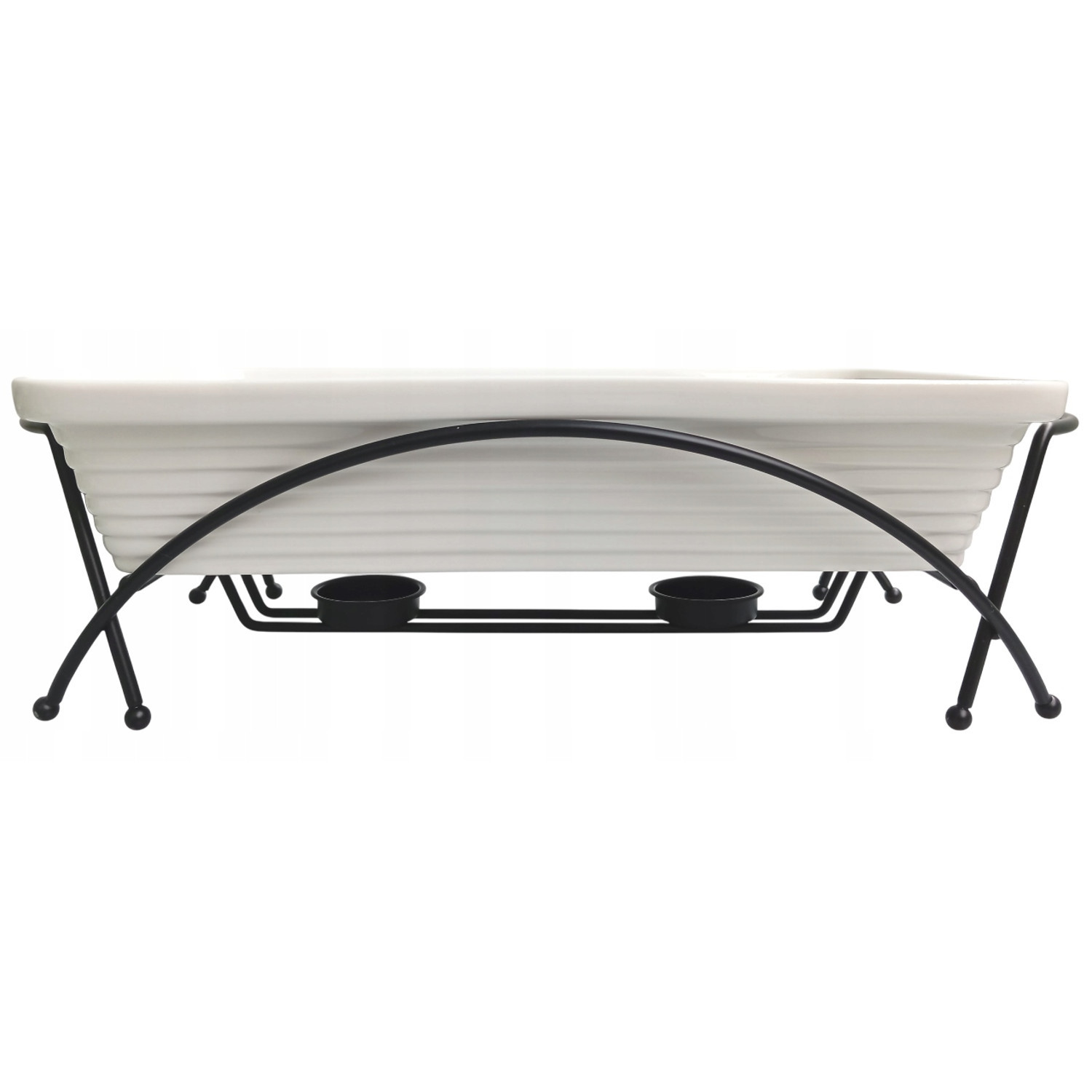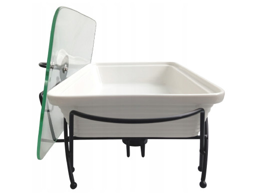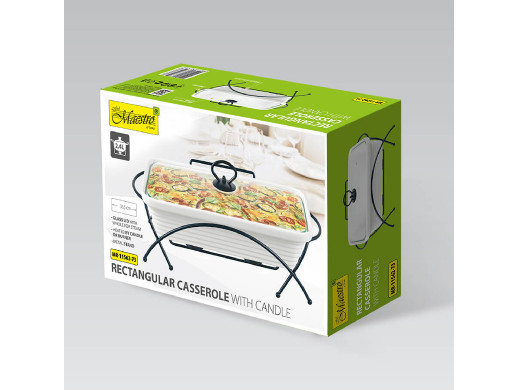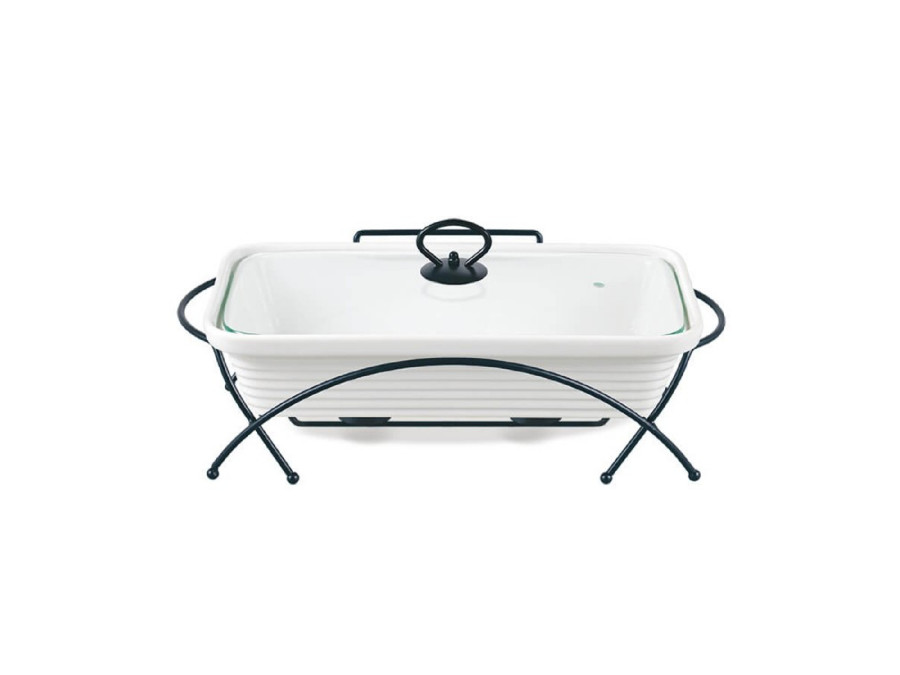 Ceramiczny podgrzewacz do potraw Maestro, Prostokątny, Kolor biały, pojemność 2,4L, Można używać w piekarniku, W zestawie stelaż