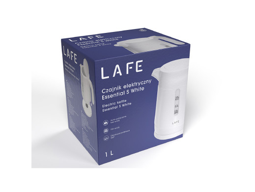 Zestaw zawiera- Czajnik elektryczny, 1 L, LAFE Essential S, biały