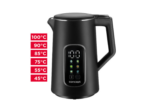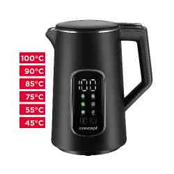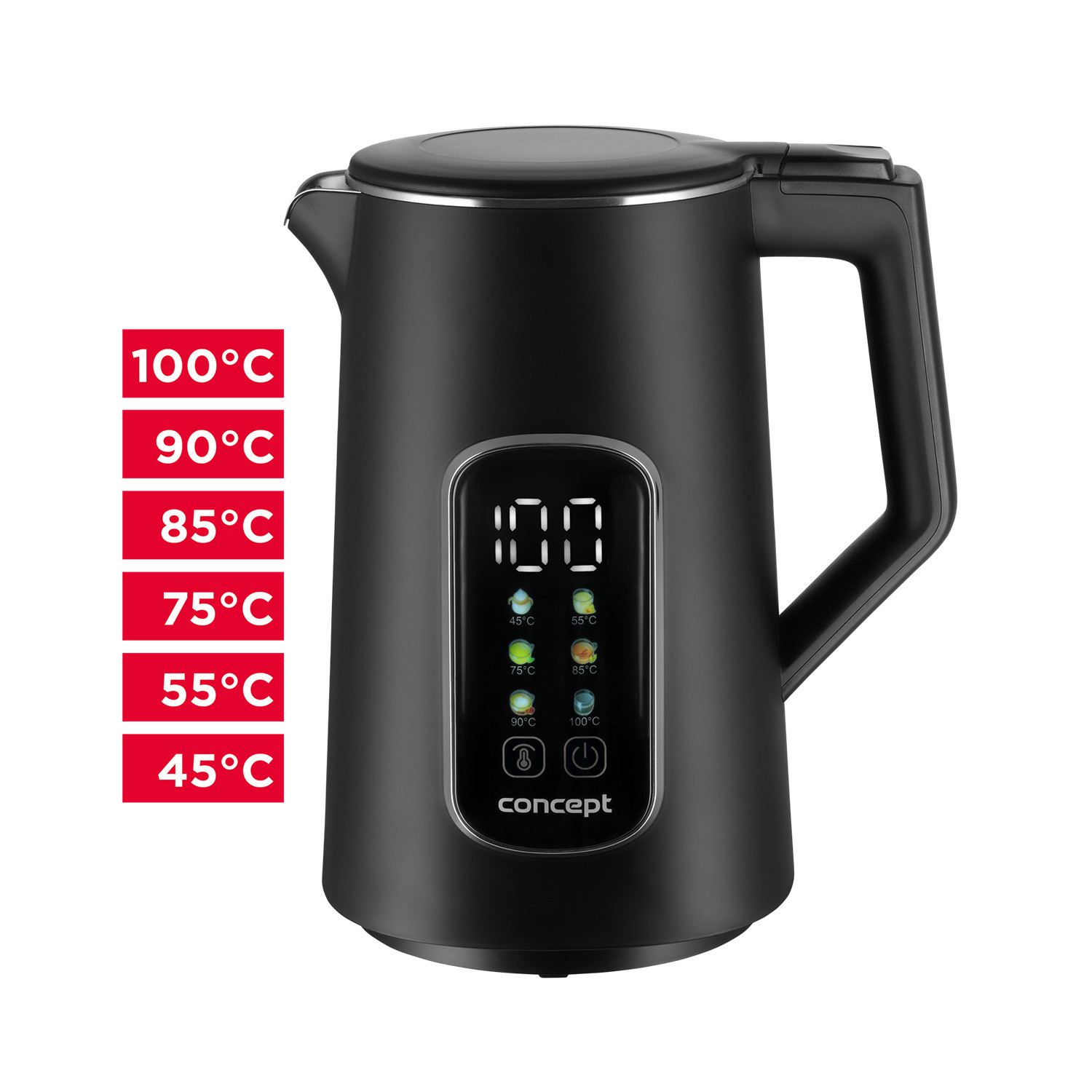 Czajnik elektryczny Concept, 1,7L, Regulacja temperatury, Wyświetlacz LED, Powierzchnia Cool touch, Wskaźnik poziomu wody, RK338