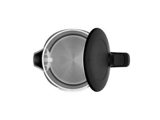 Czajnik jest wyposażony w praktyczny przycisk do łatwego otwierania pokrywy jednym naciśnięciem, co znacznie ułatwia jego napełnianie wodą. Gładkie dno z ukrytą grzałką minimalizuje osadzanie się kamienia i zanieczyszczeń. W pełni obrotowa podstawa umożliwia wygodne ustawienie czajnika z dowolnej strony, a jednocześnie zapewnia miejsce do przechowywania nadmiaru przewodu, dzięki czemu blat kuchenny pozostaje przejrzysty i uporządkowany.