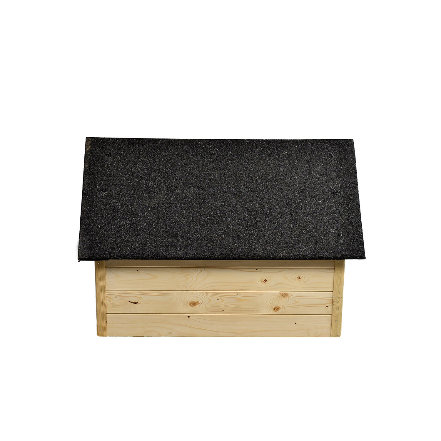 Płyta HDF gwarantuje stabilność i trwałość, podczas gdy zewnętrzna deska elewacyjna nadaje budzie estetyczny wygląd. Dach pokryty wysokiej jakości papą bitumiczną nieprzemakalną zapewnia dodatkową ochronę przed deszczem i śniegiem.