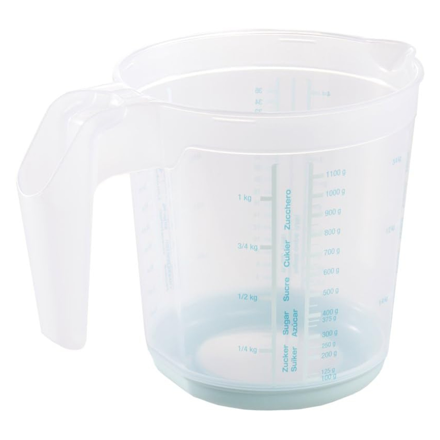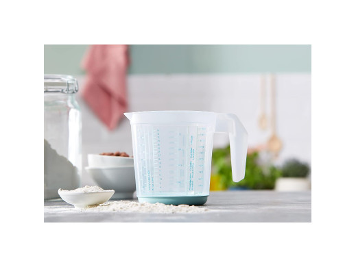 Massimo uwielbia być precyzyjny co do mililitra! A przy tym nie jest wcale małostkowy: jest w stanie opanować naprawdę dużo i to z ogromną dokładnością. No i oczywiście, zawsze twardo stoi na swoim stanowisku! Dzbanek z miękkim elementem zapewniającym antypoślizgową podstawę. Nowoczesny, zgrabny design z wygodnym uchwytem i wylewką. Zapewnia łatwe gotowanie i pieczenie: skala do odmierzania płynów, cukru, mąki, filiżanek (US) i uncji (US). Bezpieczny dla żywności.