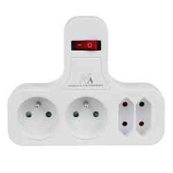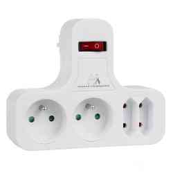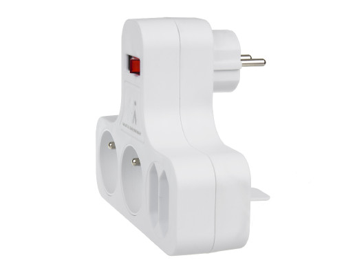 Cechy- Rozgałęźnik na cztery gniazda - 2 płaskie i 2 z uziemieniem