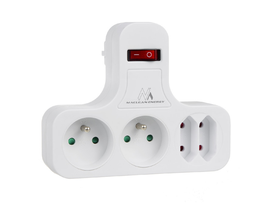Gniazdko poczwórne z wyłącznikiem i nóżką stabilizującą Maclean Energy MCE224.