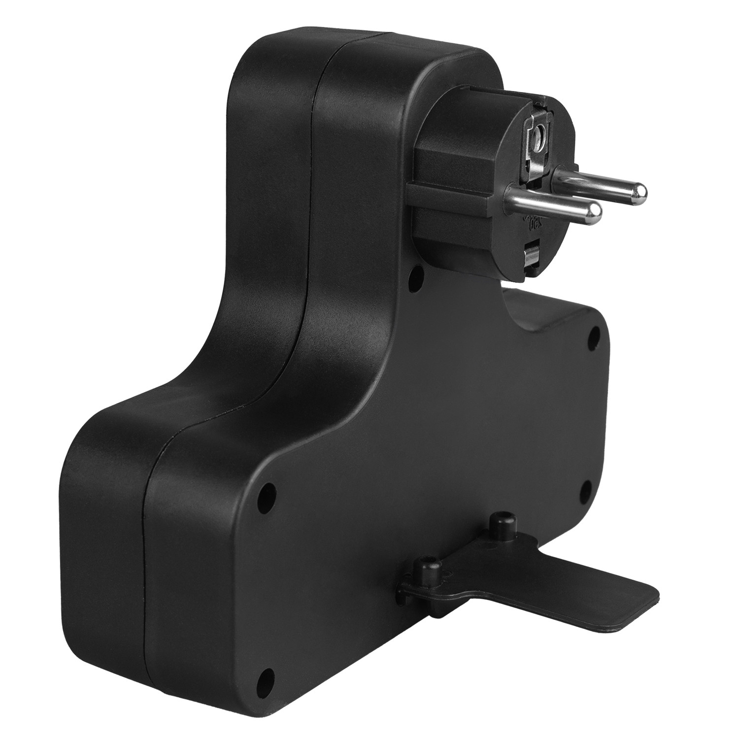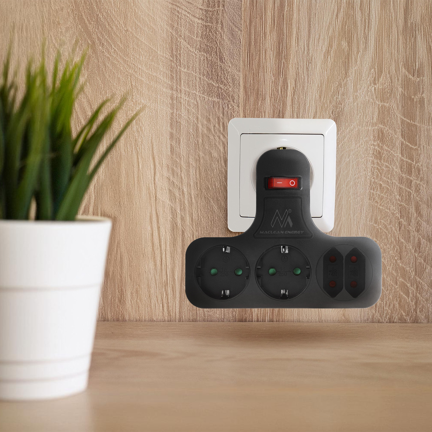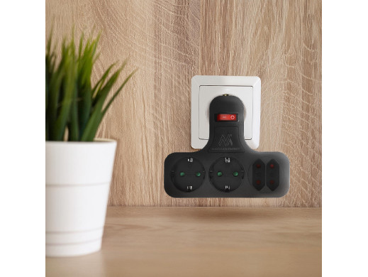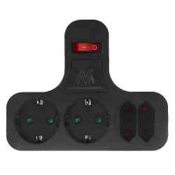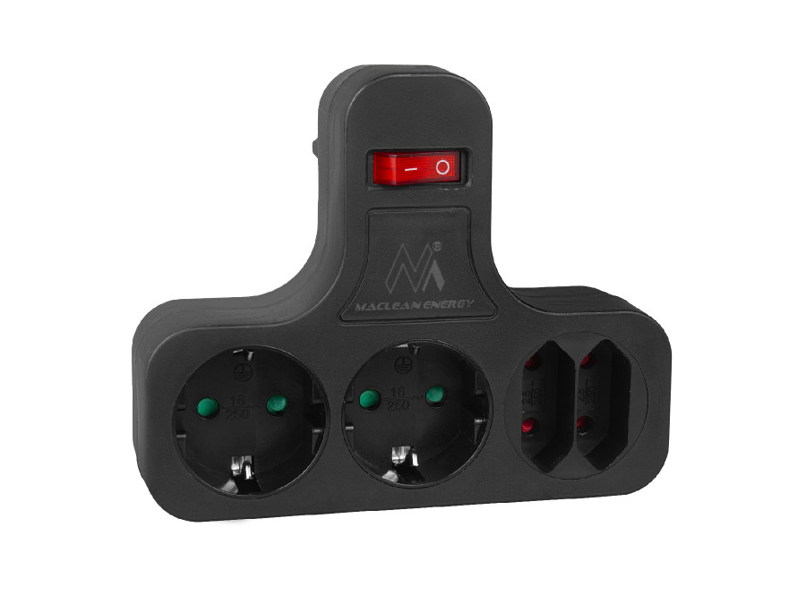 Gniazdko prądowe Maclean, poczwórne z wyłącznikiem, nóżka stabilizującą, typu schuko, 2x2.5A, 2x16A, MCE224 G/B