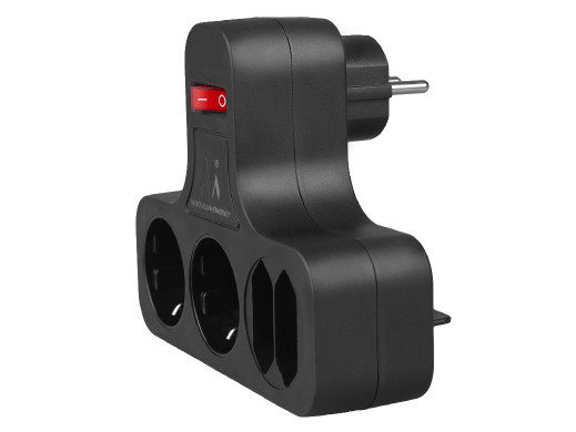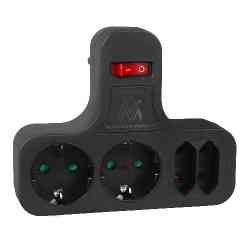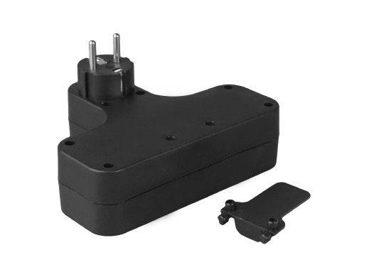 Cechy- Rozgałęźnik na cztery gniazda - 2 płaskie i 2 typu F (tzw. niemieckie lub schuko), stosowane m.in. w Niemczech