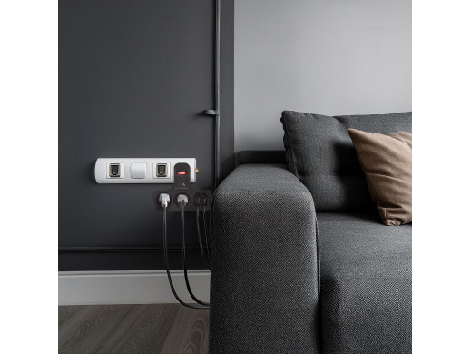 Wyposażone jest w wyłącznik, który pozwala na łatwe odłączenie wszystkich podłączonych urządzeń, co zwiększa bezpieczeństwo i oszczędność energii.