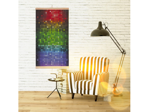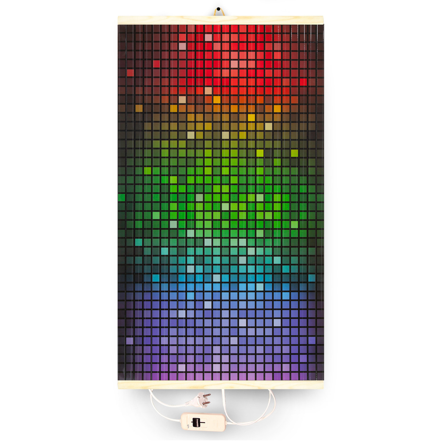 Główna część grzejnika wykonana jest z odpornej na zaginanie i łamanie polimerowej folii grzewczej, na którą nakładana jest grafika ze wzorem. Całość spięta jest drewnianymi listwami.