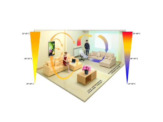 Grzejnik zapewnia ciepło i komfort termiczny w pomieszczeniu. Efekt ten osiąga się dzięki długim falom podczerwonym, które powstają podczas podgrzewania włókna węglowego. Włókno węglowe ma wysoką przewodność cieplną, co pozwala zmniejszyć pobór prądu, a tym samym zaoszczędzić na ogrzewaniu. Podczas pracy grzejnik nie nagrzewa samego powietrza, ale ogrzewa otaczające go obiekty i ludzkie ciało (poprawia krążenie krwi w organizmie).