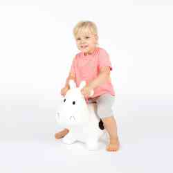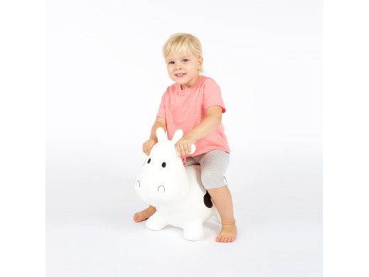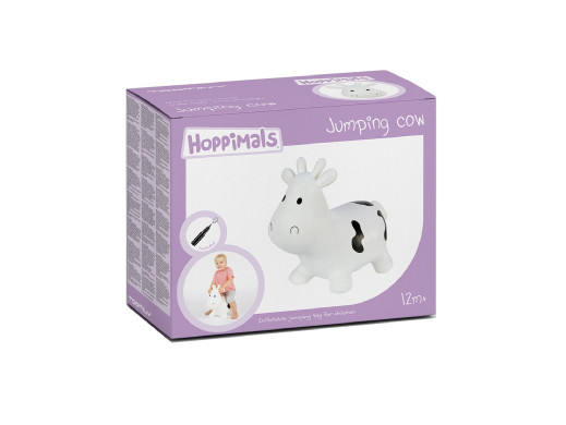 Skoczek - Krówka Hoppimals pełni rolę gumowej piłki gimnastycznej. Zabawką można bawić się zarówno w domu jak i w ogrodzie. Oprócz świetniej zabawy Skoczki zapewniają dziecku ćwiczenia, które pomagają rozwijać zamiłowanie do aktywności fizycznej na całe życie. Poprzez zabawę z Hoppimals dziecko odkrywa ruch i kolory, jednocześnie rozwijając koordynację i wzmacniając kręgosłup, mięśnie pleców i nóg. Zabawka przeznaczona jest dla dzieci od 1 roku życia. Produkt zapakowany jest w prezentowy kartonik, w zestawie dołączona jest pompka.