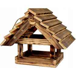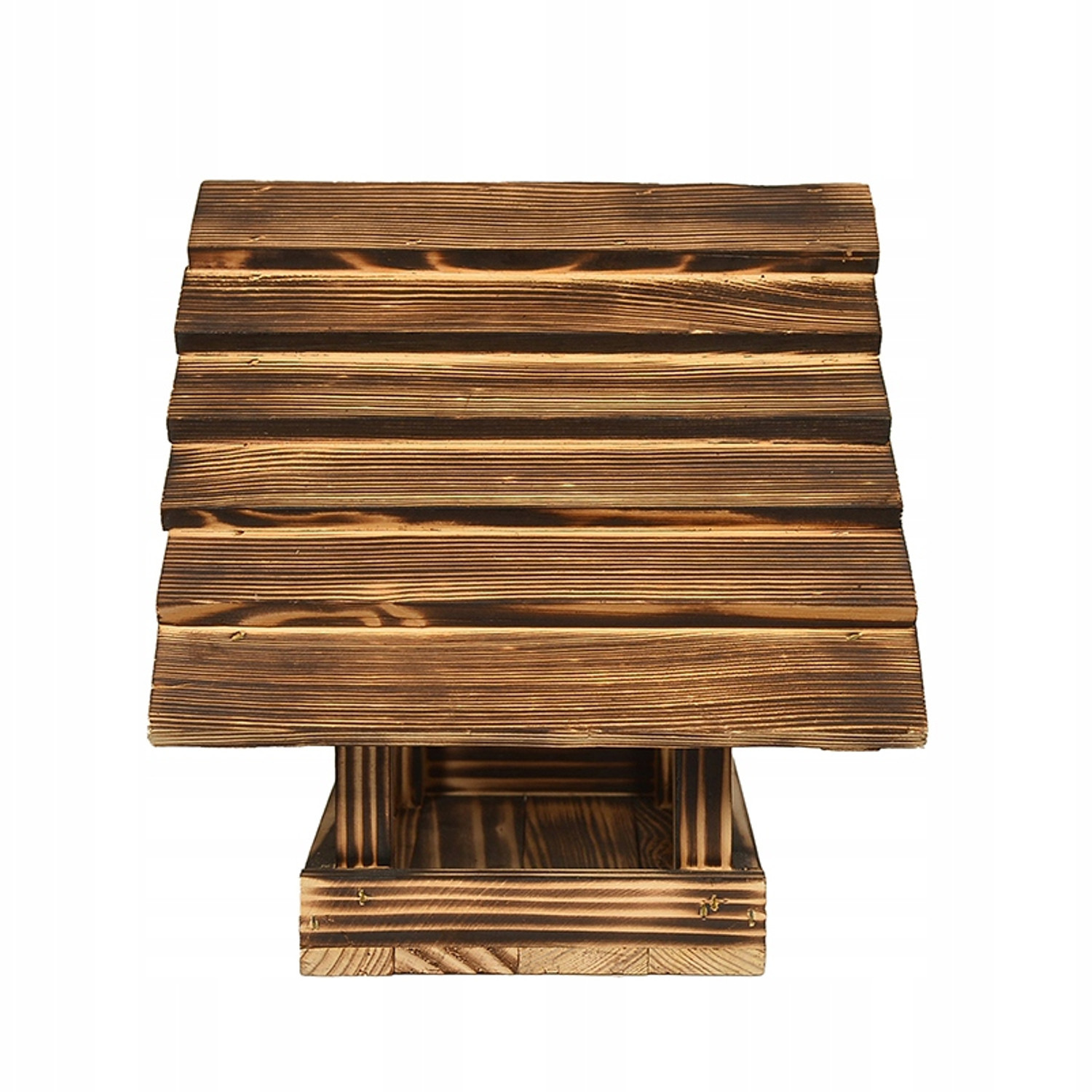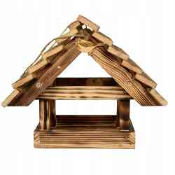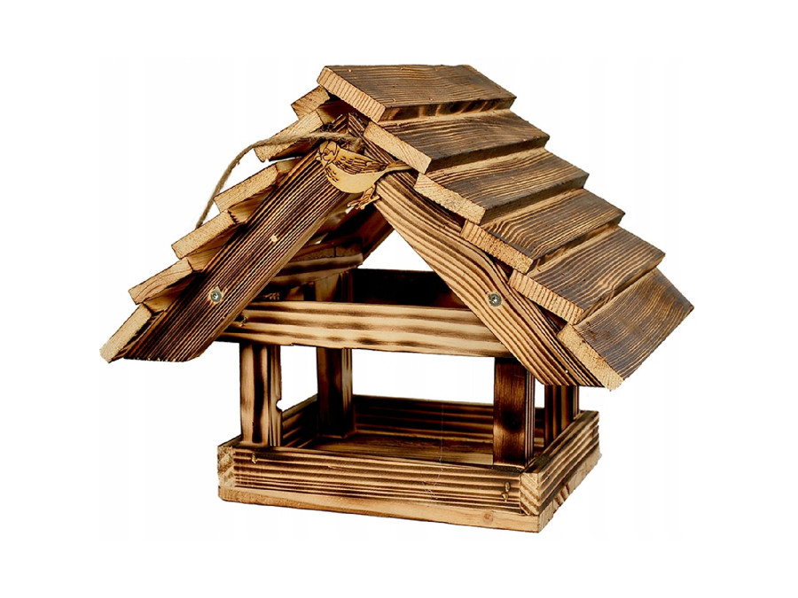 Duży, opalany karmnik starannie wykonany z suchego drewna świerkowego, co zapewnia jego stabilność i wytrzymałość. Karmnik ozdobiony jest uroczym ptaszkiem, który doda uroku każdemu ogrodowi. Jego konstrukcja została zaprojektowana tak, aby kropla deszczu się nie prześlizgnęła, co gwarantuje, że pokarm dla ptaków pozostanie suchy.