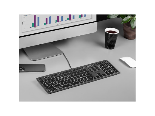 Połączenie przewodowe zapewnia stabilną komunikację pomiędzy klawiaturą i komputerem. Kabel o długości 150 cm pozwala na wygodne podłączenie, nawet jeżeli urządzenia znajdują się w odległości od siebie. Ponadto klawiatura została wyposażona w 2 porty USB, co umożliwi Ci współpracę z dodatkowymi akcesoriami, jak np. mysz komputerowa lub ładowanie smartfonu. Urządzenie obsługuje takie systemy, jak Windows i Mac oraz pozwala na swobodne przełączanie między nimi.