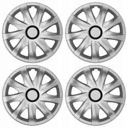 Komplet wysokiej jakości kołpaków wykonanych z tworzywa odpornego na uderzenia i warunki atmosferyczne. Kołpaki pasują do felg stalowych większości modeli samochodów (nie pasują jedynie do felg wypukłych).