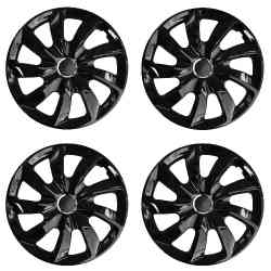 Komplet wysokiej jakości kołpaków wykonanych z tworzywa odpornego na uderzenia i warunki atmosferyczne. Kołpaki pasują do felg stalowych większości modeli samochodów (nie pasują jedynie do felg wypukłych).