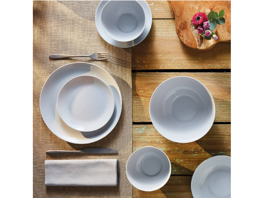 - W skład zestawu wchodzą: 6 x talerz obiadowy 25 cm, 6 x talerz głęboki 20 cm, 6 x talerz deserowy 19 cm, 1 x salaterka 21 cm