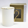 Ten kubek to hołd dla elegancji i wysokiej jakości. Wykonany jest z najwyższej klasy porcelany, znanej jako Szlachetna Porcelana Kostna. Charakteryzuje się niezwykle jasną bielą oraz wyjątkowym prześwitywaniem, które podkreśla jego unikatowy charakter.