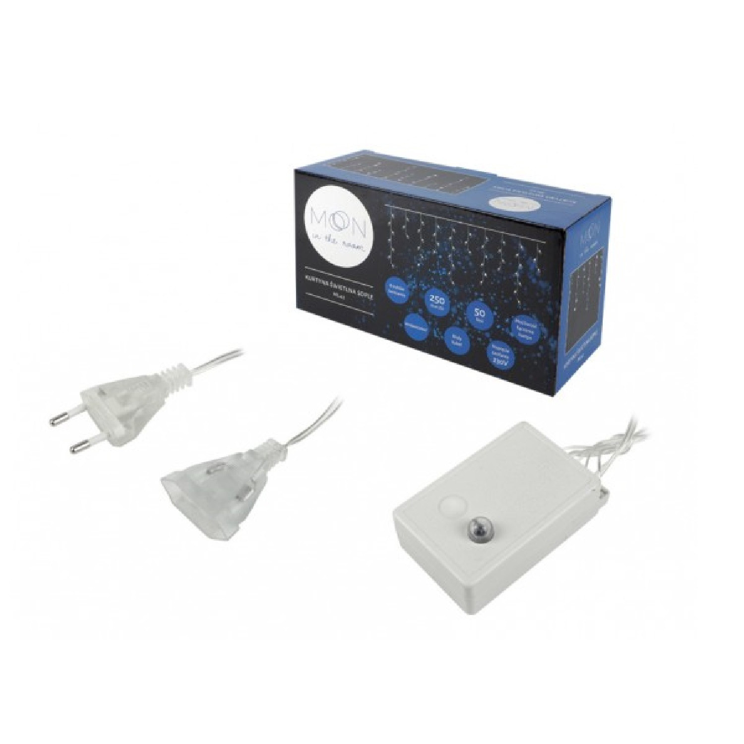 Zestaw zawiera- Kurtyna świetlna sople 250LED 5m niebieskie