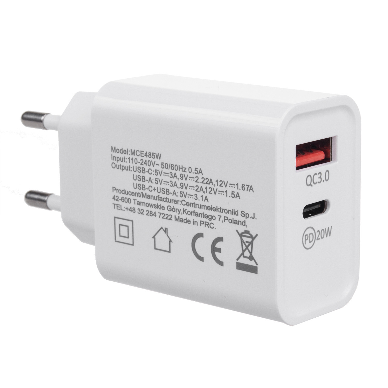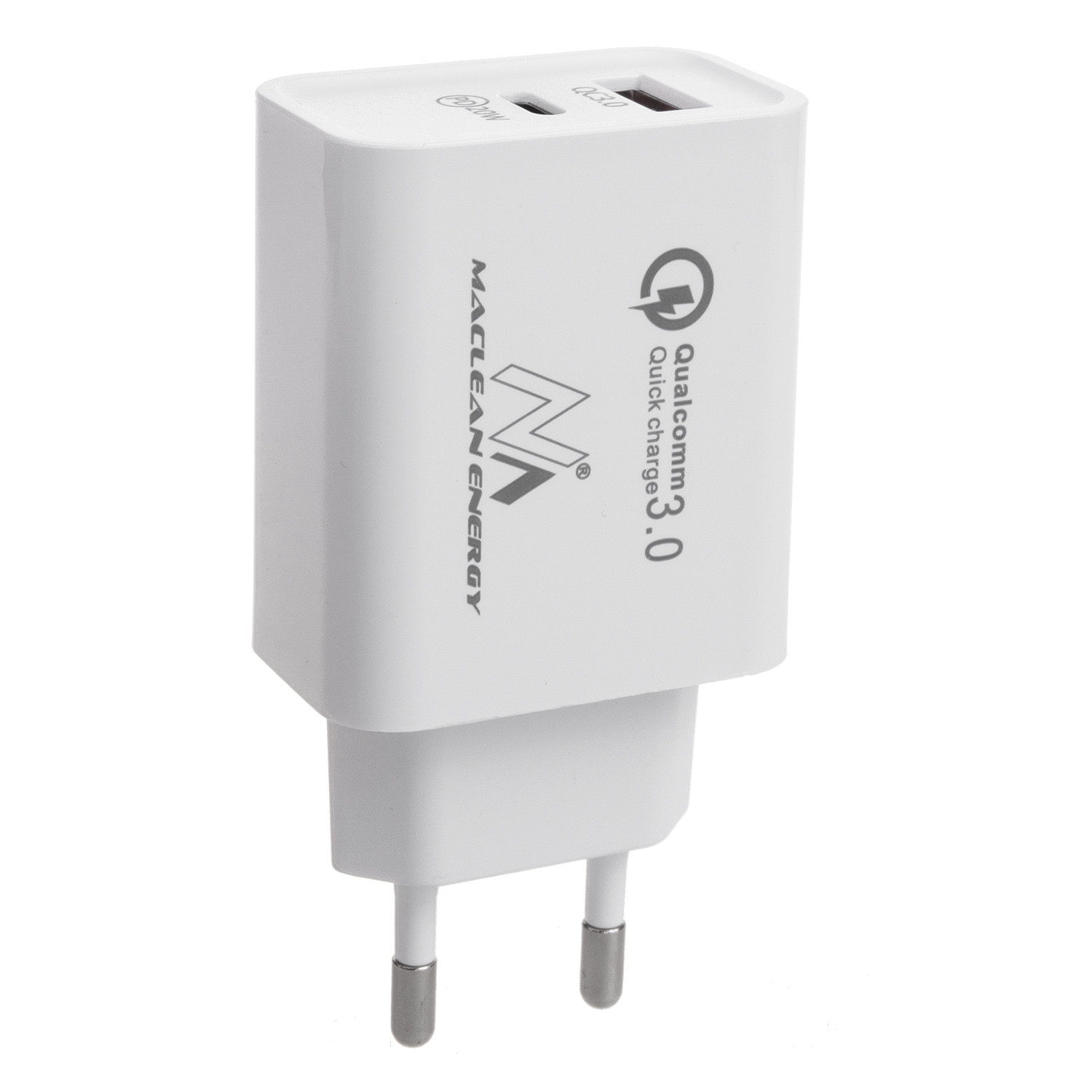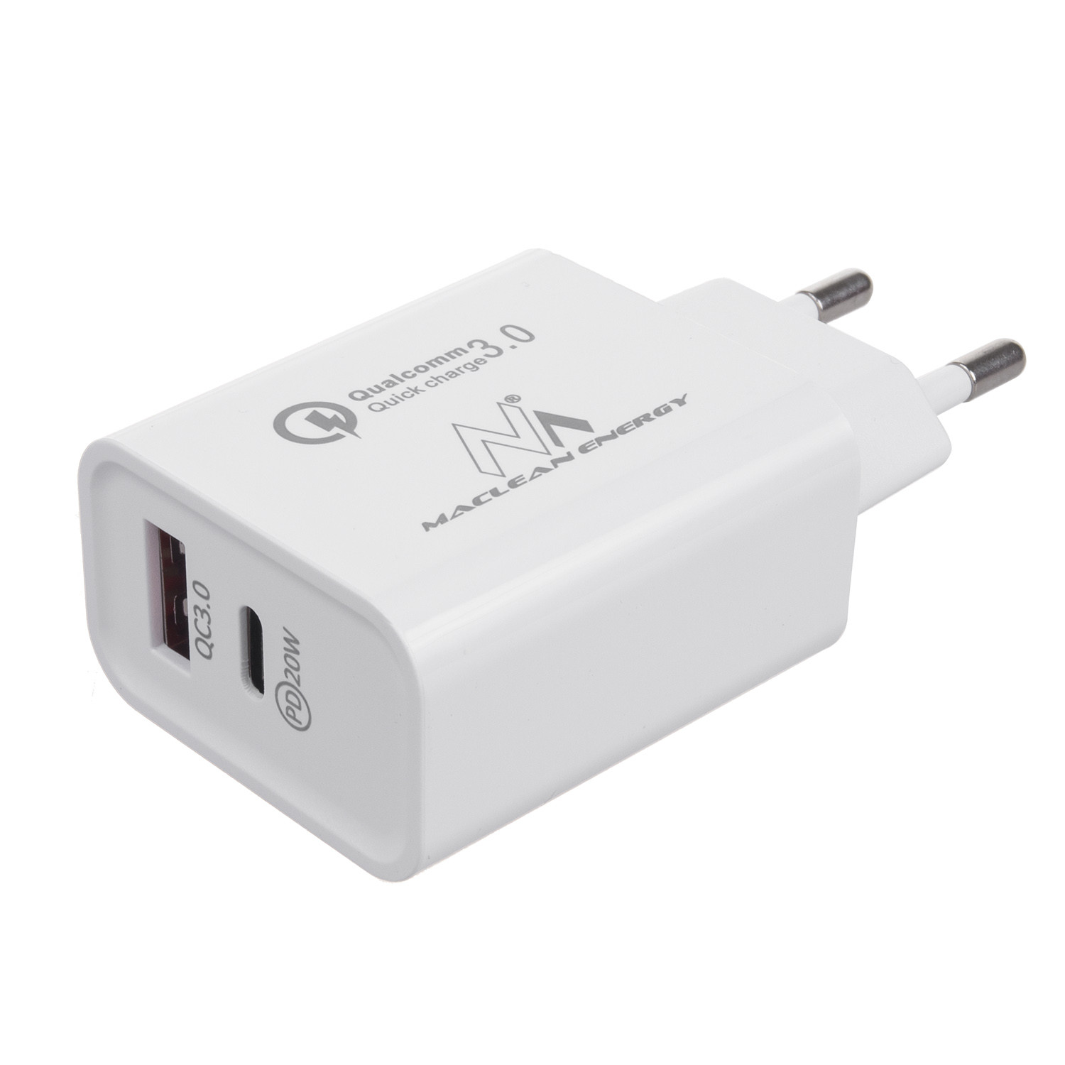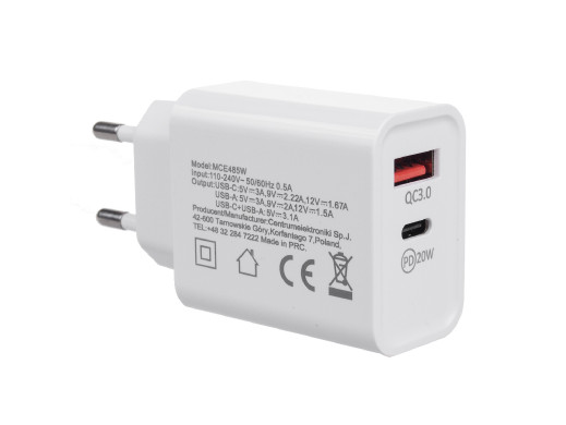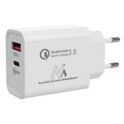 Ładowarka sieciowa 20W Maclean, PD, Power Delivery, Qualcomm Quick Charge, QC 3.0, 5V3A/9V2.22A/12V1.67A, biała, MCE485W