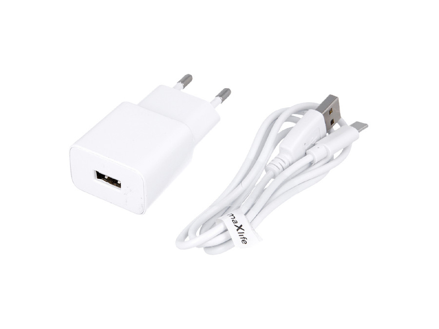 Ładowarka sieciowa USB MXTC-01 1A + kabel USB typ C biała Maxlife