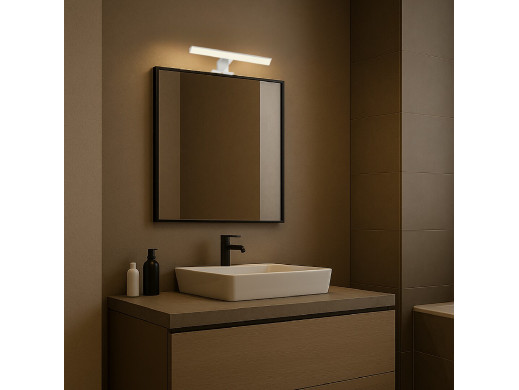 - Dzięki szerokiemu kątowi świecenia skutecznie oświetla całą powierzchnię lustra