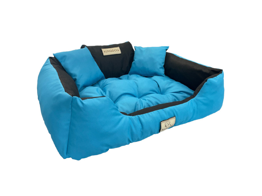 Legowisko KingDog - doskonałe dla Twojego psa lub kota. Rozmiar: "M" 75 x 65 cm (wymiary wewnętrzne to 60 x 50 cm). Kraj pochodzenia: POLSKA. Tkanina łatwa w czyszczeniu i odporna na zabrudzenia. W zestawie dwie poduszki. Spód legowiska wykonany jest z materiału łatwego w czyszczeniu. Na frontowej części legowiska znajduje się naszywka z nazwą producenta.