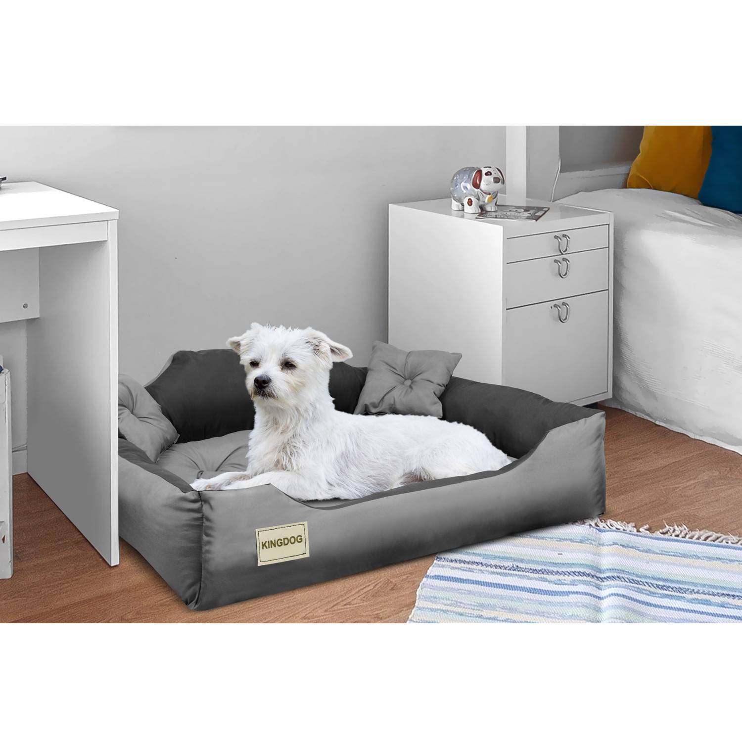 Zestaw zawiera- Legowisko dla psa kota Kingdog 75x65 cm z mikrofibry - kolor szaro-czarny
