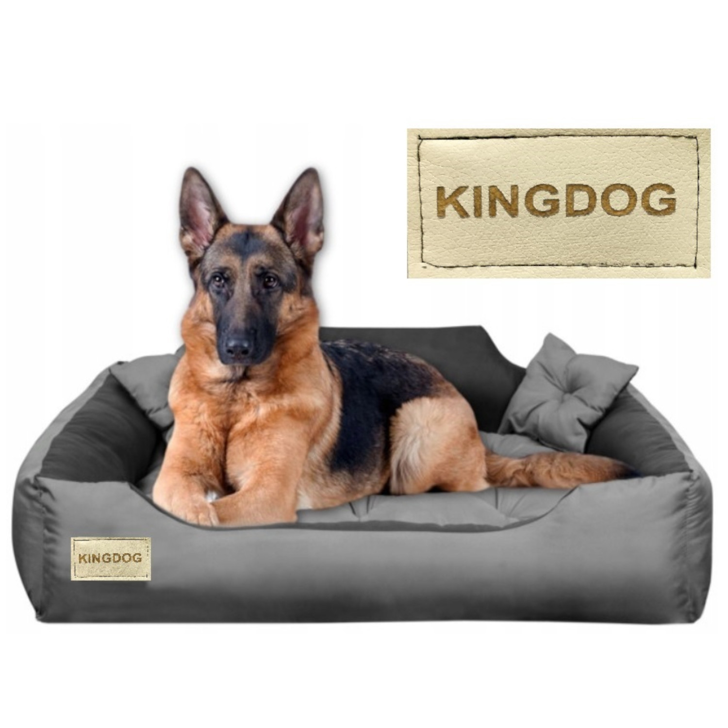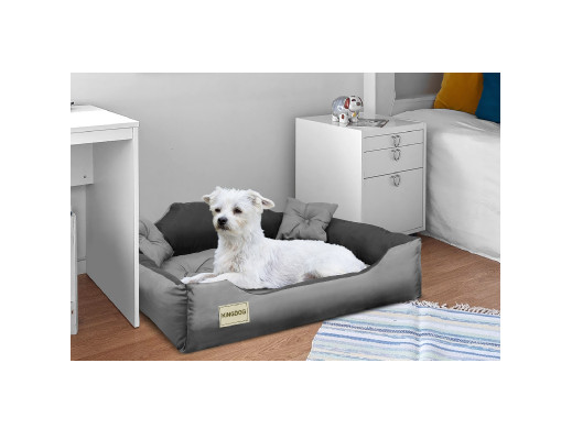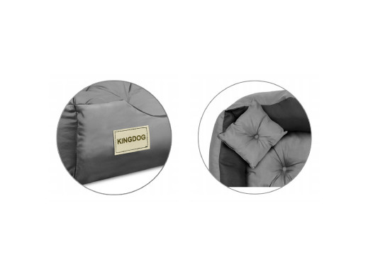 Legowisko KingDog - doskonałe dla Twojego psa lub kota. Rozmiar: "M" 75x65 cm. Tkanina łatwa w czyszczeniu i odporna na zabrudzenia. W zestawie dwie poduszki. Pikowane poduszki sprawią, że Twój najlepszy przyjaciel będzie spać jak prawdziwy król. Na frontowej części legowiska znajduje się naszywka z nazwą producenta. Spód legowiska wykonany jest z materiału łatwego do czyszczenia.