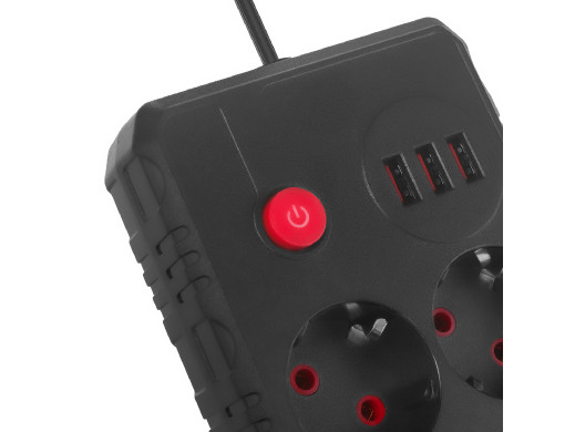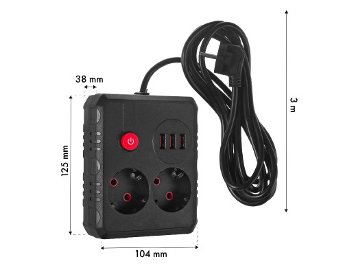 Przewód o długości 3 metrów daje pełną elastyczność w rozmieszczeniu listwy. Bez problemu dosięgniesz do gniazdka nawet wtedy, gdy znajduje się ono w trudno dostępnym miejscu. To idealne rozwiązanie do biurek oddalonych od ściany, warsztatów lub miejsc, gdzie liczy się swoboda aranżacji.