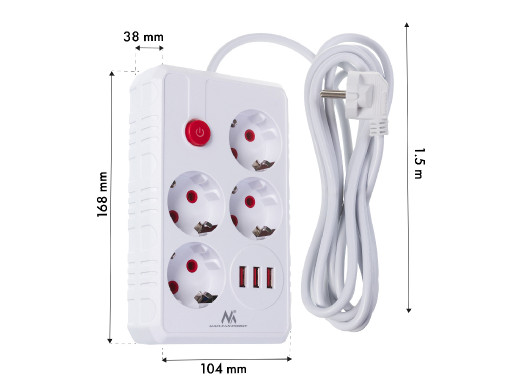 Przewód o długości 1,5 metra to doskonały kompromis pomiędzy swobodą ustawienia a zachowaniem estetyki miejsca pracy. Taka długość pozwala wygodnie podłączyć listwę do najbliższego gniazdka, nie powodując plątaniny kabli. Świetnie sprawdzi się na biurku, pod stołem lub w pobliżu telewizora, gdzie liczy się czysty wygląd i łatwy dostęp do zasilania.