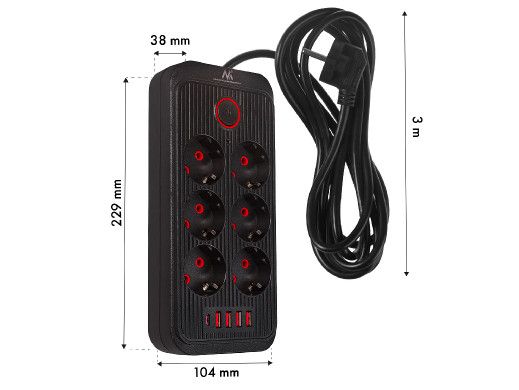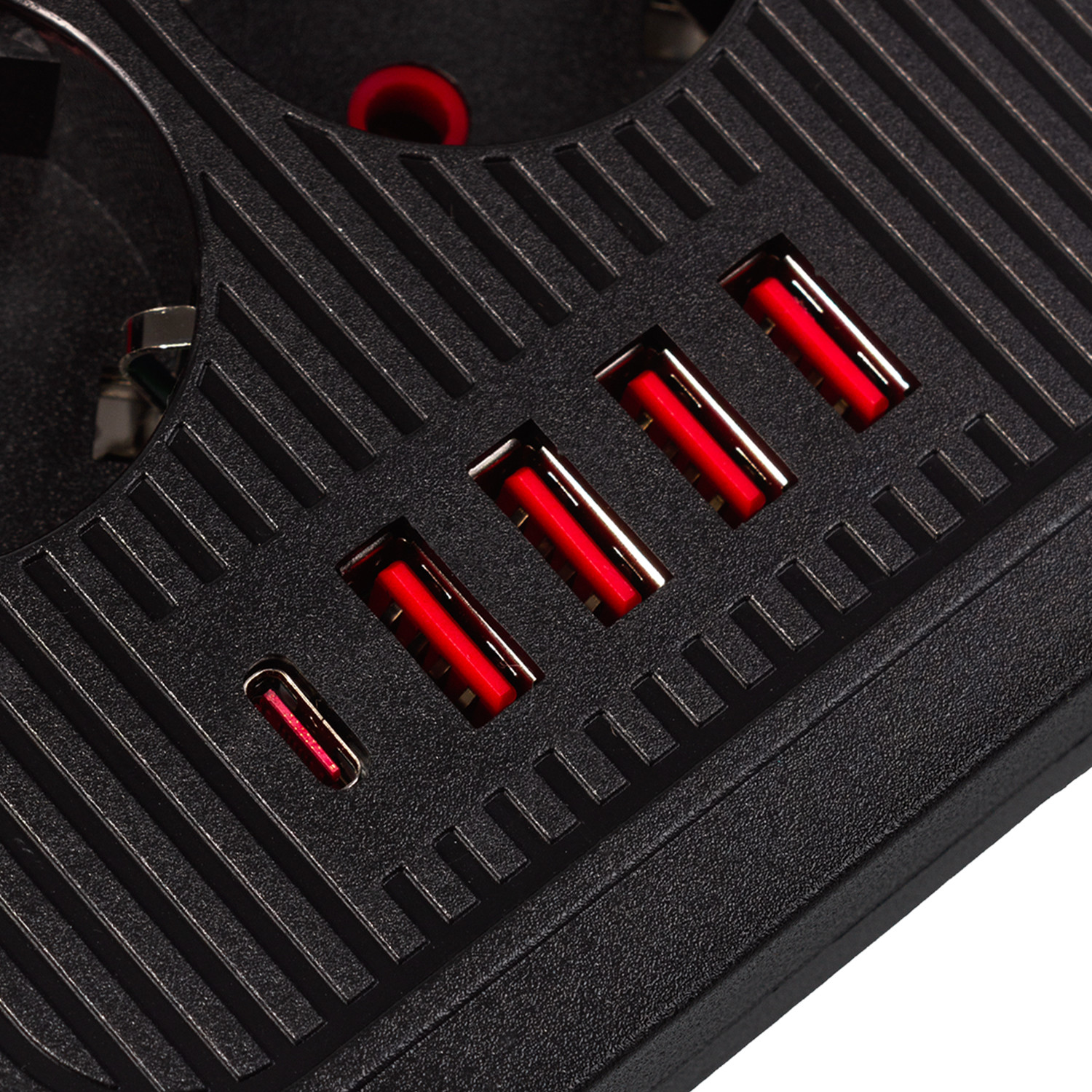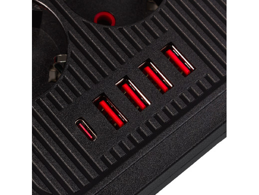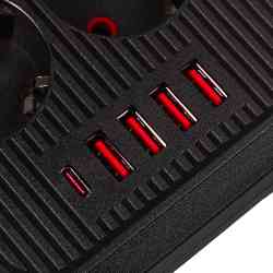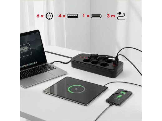 Nowoczesna listwa zasilająca z 6 gniazdami, 4 portami USB i 1 portem USB-C to zaawansowane rozwiązanie dla użytkowników, którzy potrzebują jednocześnie zasilić wiele urządzeń. Idealnie sprawdzi się w biurach, pracowniach, pokojach gamingowych i wszędzie tam, gdzie liczy się duża liczba dostępnych gniazd oraz szybkie ładowanie sprzętów mobilnych. Wysoka moc 2500W i solidne wykonanie gwarantują bezpieczeństwo i niezawodność każdego dnia.