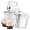 Model ten posiada wysoką moc maksymalną 750 W, dzięki czemu bez problemu wykona za Ciebie taką czynność jak ubijanie białek na bezę, uzyskując jednolitą i sztywną masę, a także dokładnie wymiesza składniki na lekki i puszysty biszkopt.