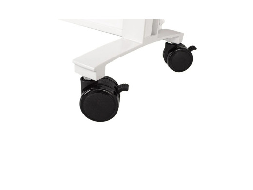 Zestaw wyposażony został w hamulec blokujący, który zapobiega przypadkowemu przesunięciu promiennika, nawet na śliskiej powierzchni. Montaż nie wymaga narzędzi – wystarczy kilka chwil, by zamontować lub zdemontować kółka w zależności od potrzeb. Nogi można wygodnie przechowywać lub transportować razem z urządzeniem.