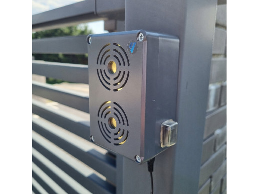 Odstraszacz Viano Waterpro to profesjonalny, bardzo mocny odstraszacz, który z łatwością odstrasza kuny, łasice, szczury i myszy. Urządzenie cechuje wyjątkowa odporność na czynniki atmosferyczne (promienie słoneczne, deszcz, mróz i wiatr) oraz duży zasięg działania (do 2500m2). Nadaje się zarówno do użytku zewnętrznego jak i wewnętrznego.
