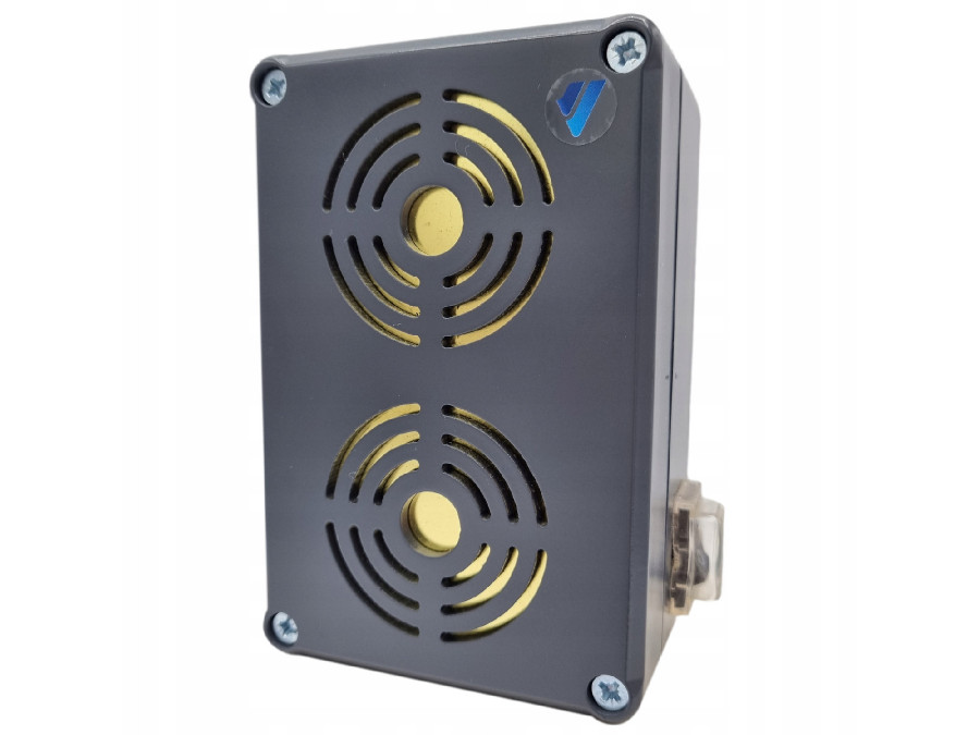 W urządzeniu wykorzystano mocne głośniki piezoelektryczne wykonane z mosiądzu, które dodatkowo zabezpieczone zostały maskownicą. Głośniki piezoelektryczne wykonane z mosiądzu charakteryzują się ogromną odpornością na czynniki takie jak niska, wysoka temperatura oraz wilgoć. Stosowane w innych urządzeniach zwykłe czarne głośniki membranowe, konstrukcyjnie podatne są na uszkodzenia i mogą wywoływać zwarcia w instalacji. Dodatkowo brak maskownic w tego typu urządzeniach, naraża sprzęt na przypadkowe uszkodzenia mechaniczne.