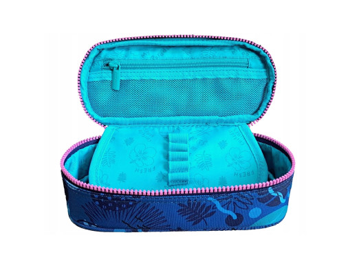 Piórnik posiada jedną dużą komorę główną, w której znajduje się wewnętrzna klapka z organizerem na długopisy, kredki, flamastry.