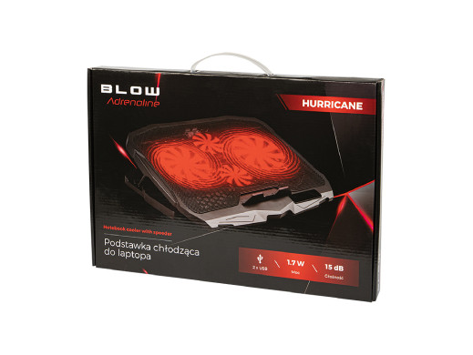 Podstawka chłodząca pod laptopa Blow Hurricane, Cztery wentylatory, Czerwone podświetlenie, Wbudowany hub USB