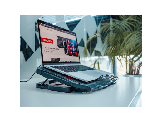 Gamingowa podkładka BLOW HURRICANE dzięki aż czterem wentylatorom chłodzącym zapewni optymalną temperaturę laptopa. Usuwając ciepło wytwarzane pod spodem notebooka, chłodzi go i obniża temperaturę pracy jego podzespołów co zapewnia stabilną oraz dłuższą żywotność najważniejszych podzespołów komputera.