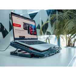 - Solidna, wytrzymała konstrukcja stabilnie utrzymuje laptop, chroniąc go przed przegrzewaniem i przesuwaniem się podczas użytkowania