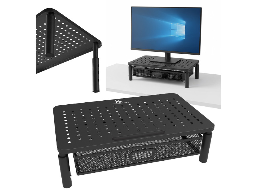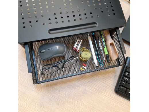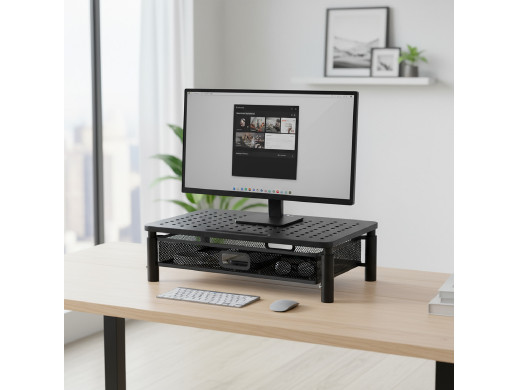 Podstawka z szufladą pod monitor lub laptop to praktyczne i ergonomiczne rozwiązanie, które poprawia komfort pracy oraz organizację przestrzeni biurowej. Przeznaczona jest do monitorów o przekątnej ekranu od 13 do 32''.