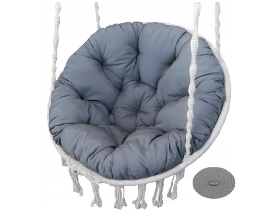- Pasuje zarówno do huśtawek wiszących typu bocianie gniazdo / kokon jak i do foteli stojących, okrągłych typu Papasan / Jordrup