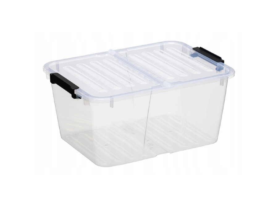 Pojemnik z podwójną pokrywą Plast Team Home Box Flex 15L, Składana pokrywa, Klipsy zabezpieczające, Transparentny, 23010800